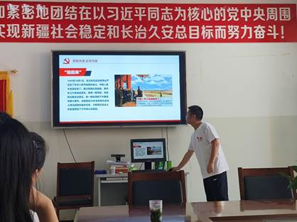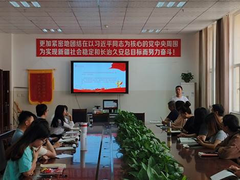 为隆重庆祝中华人民共和国成立75周年,深刻感悟新中国成立75周年来接续奋斗的光辉历程、伟大成就、宝贵经验,深刻感悟党的十八大以来党和国家事业取得的历史性成就、发生的历史性变革,9月25日下午,学院教师党支部开展庆祝中华人民共和国成立75周年“党旗映天山”主题党日活动。活动由教师党支部书记邓伟同志主持,教师支部全体党员参加。