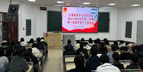 为深入学习贯彻习近平新时代中国特色社会主义思想,落实学校第二次党代会和二届二次全委(扩大)会议精神,围绕学校“六个会议”确定的目标任务推进工作,学院于3月3日在数信楼报告厅召开2023-2024学年第二学期第一次团学骨干工作会议,团委副书记王凤梅、辅导员古丽米热、裴文奎出席本次会议,院团委学生会全体干部、各班团干部参加会议。