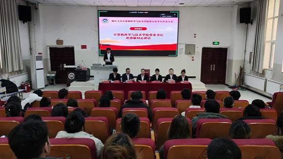 11月12日,计算机科学与技术学院第五次学生代表大会在新泉校区顺利召开。学院党委书记赵慧敏、学校学生会主席团成员王婉婷、学院团委副书记廖凡、辅导员古丽米热·图拉克以及学生代表出席开幕式。